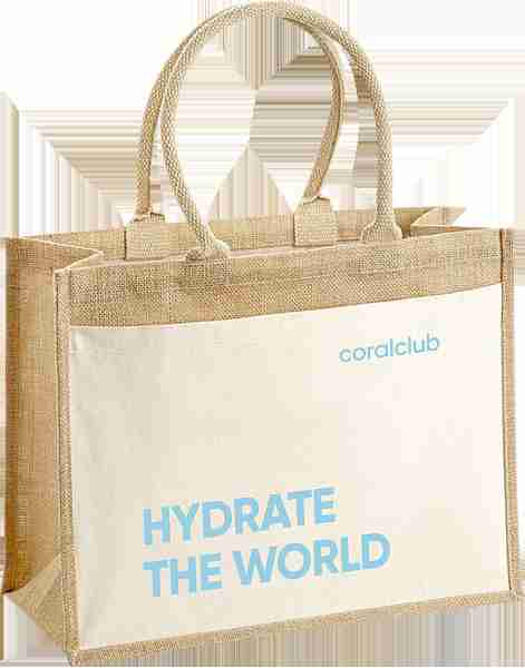 Geantă practică și rezistentă din iută cu buzunar aplicat pe partea frontală.