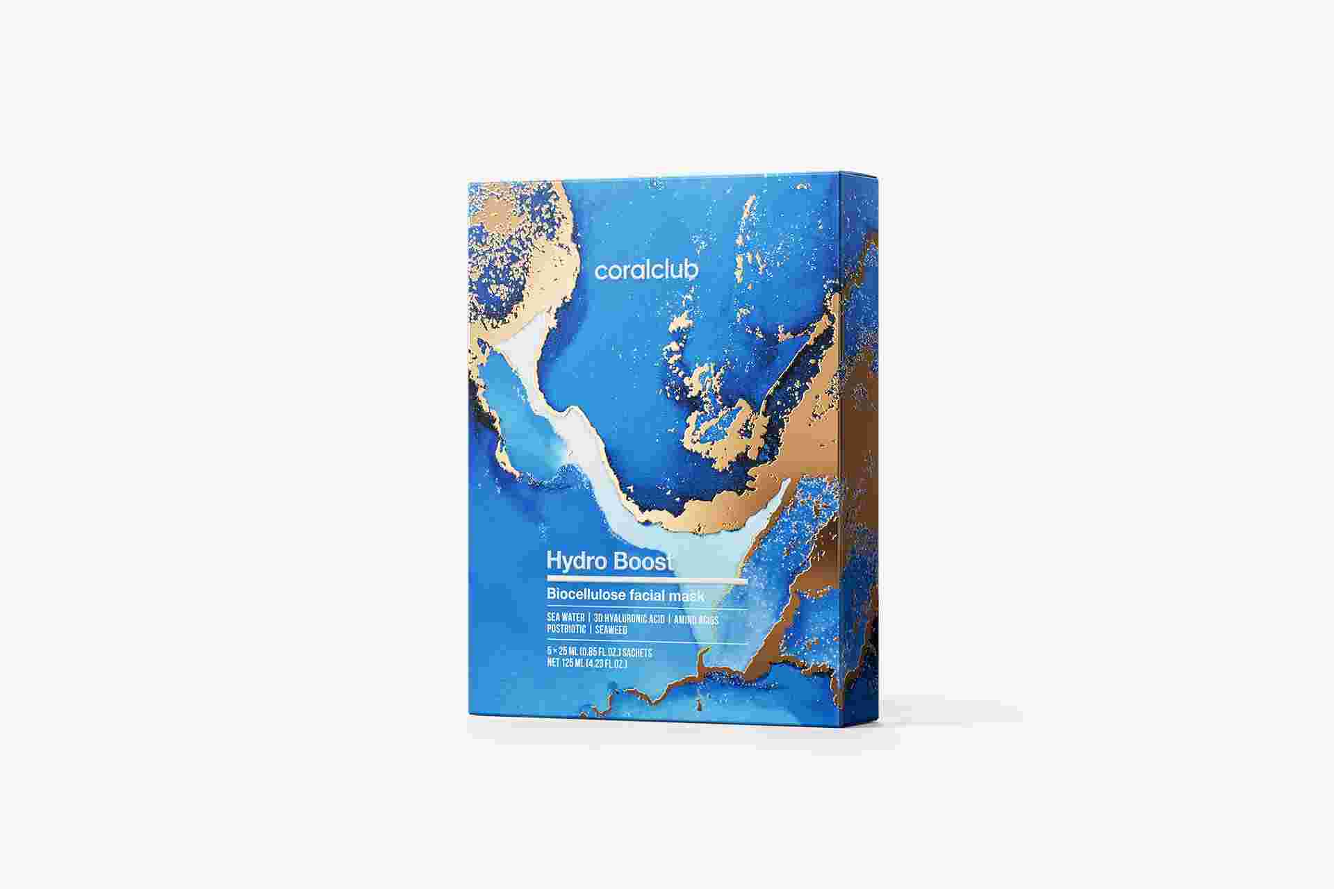 Mască din bioceluloză cu apă de mare, acid hialuronic 3D, alge marine și metabiotice. Hidratează în profunzime și combate deshidratarea, descuamarea și primele semne de îmbătrânire.
