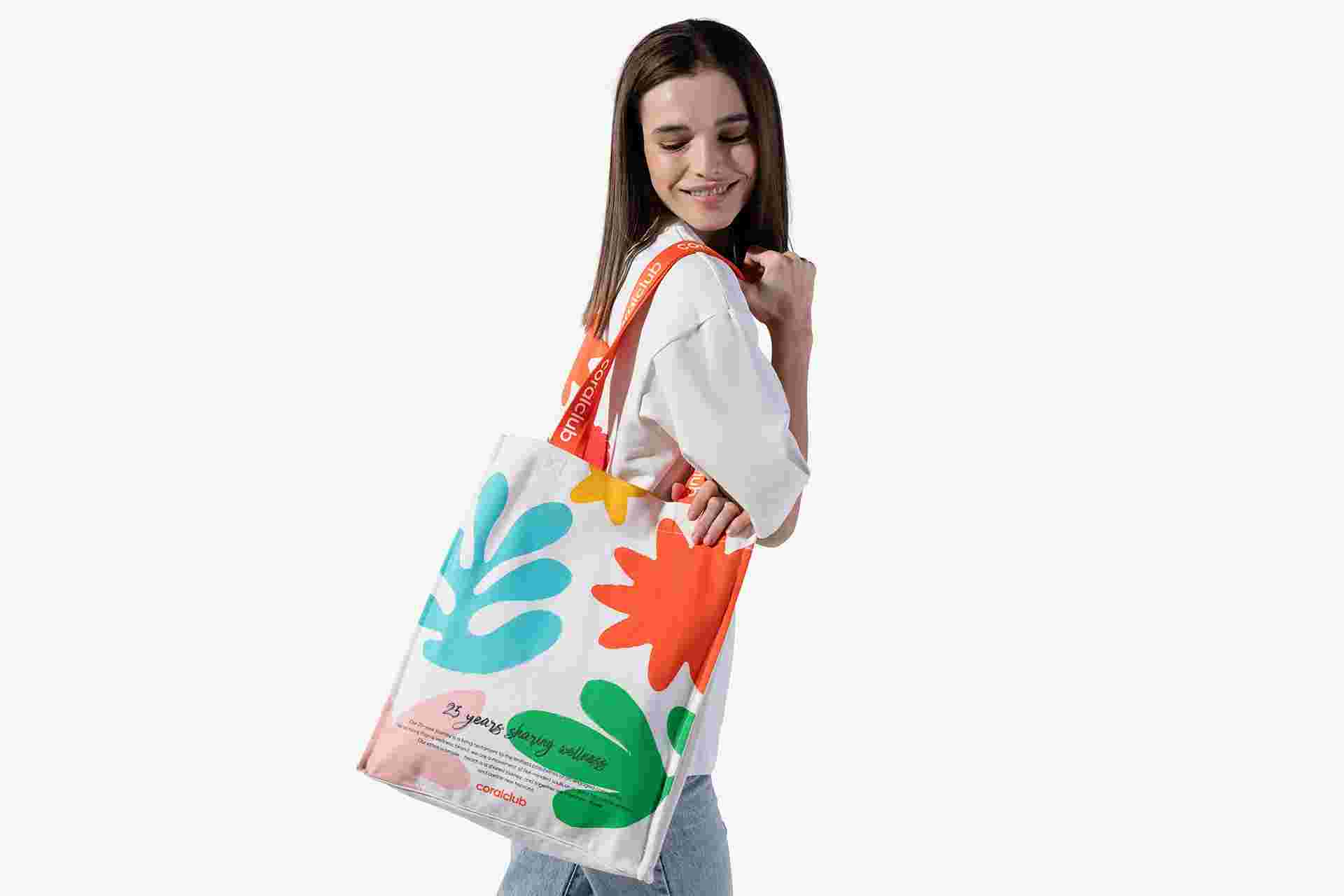 Designul colorat este imprimat pe ambele fețe ale genții și reflectă principalele noastre surse de inspirație - simboluri ale naturii, sănătății și vieții împlinite.